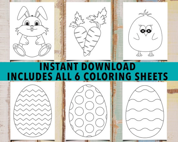 6 Easter Themed Coloring Pages 8 5x11 A4 Sizes Printable Coloring Kids Coloring Classroom Teaching Supplies Activity Sheet Party