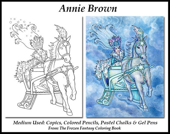 Snow Queen Adult Coloring Page Fantasy Printable Download Digi Stamp Line Art Coloring Book Snow Queen Sleigh Ride By Annie Brown